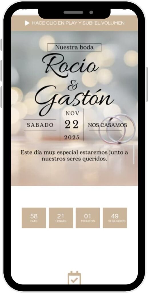 Viví una experiencia completa: agregamos música a tu tarjeta para que sea aún mejor, tus invitados podrán confirmar su asistencia con facilidad, disfrutar de una divertida trivia interactiva durante la fiesta y compartir sus mejores momentos en un álbum digital. ¡Todo pensado para hacer de tu evento algo inolvidable!