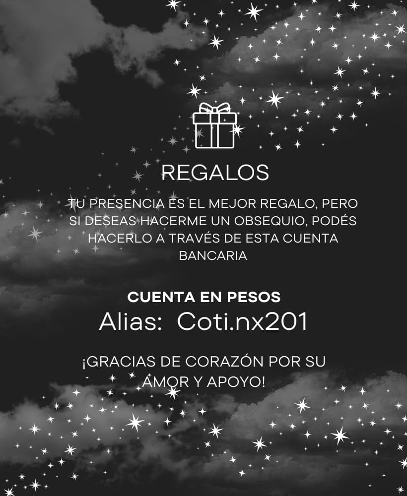 TU PRESENCIA ES EL MEJOR REGALO, PERO SI DESEAS HACERME UN REGALO, PODES HACERLO A TRAVÉS DE ESTA CUENTA