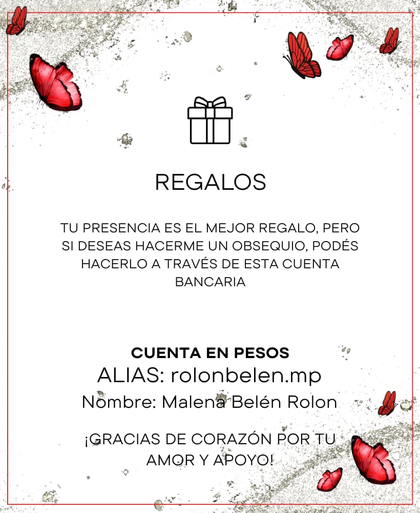 TU PRESENCIA ES EL MEJOR REGALO, PERO SI DESEAS HACERME UN OBSEQUIO, PUEDES HACERLO A TRAVÉS DE ESTA CUENTA