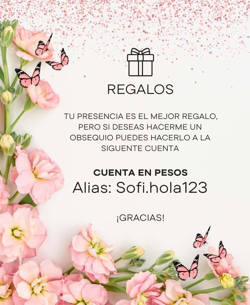 TU PRESENCIA ES EL MEJOR REGALO, PERO SI DESEAS HACERME UN REGALO, PODES HACERLO A TRAVÉS DE ESTA CUENTA